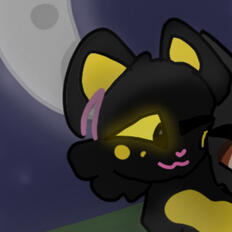 Goldfish is a primarily black tortoiseshell with dandelion splotches and goldenrod eyes. She has a set at the base of her left year, a scar on her right hidequarter, a scar on her left shoulder, and on her tail.